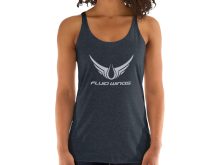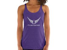 This racerback tank is soft, lightweight, and form-fitting with a flattering cut and raw edge seams for an edgy touch.